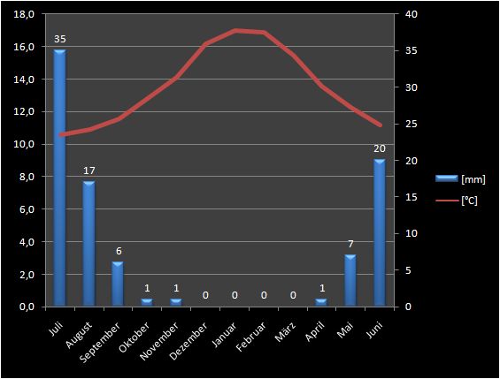 zeige ich exemplarisch das Klimadiagramm von La Serena, einer